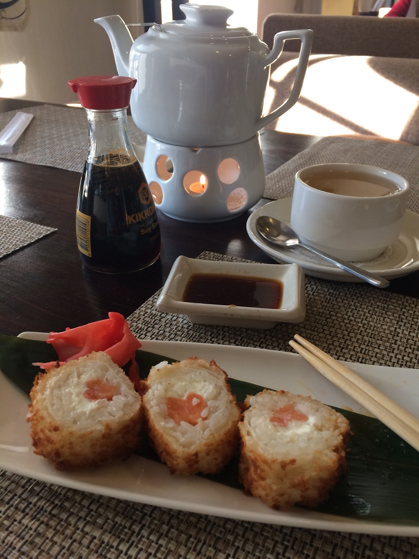 Роллы вкусные, чай ароматный:)Цены обычные, либо относительно Москвы я оцениваю...Место заслуживает хорошей оценки!